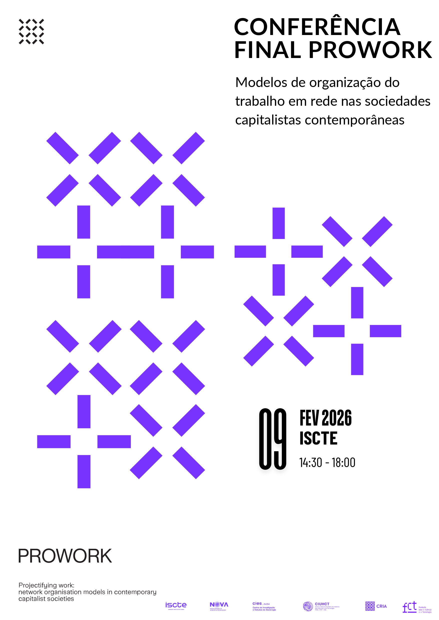 O projeto Projectifying work: network organisation models in contemporary capitalist societies (PROWORK) terá a sua conferência final no dia 09 de fevereiro de 2026, no Iscte - Instituto Universitário de Lisboa.