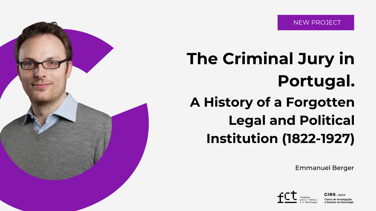 The Centre for Research and Studies in Sociology (CIES), hosts the project CRIMJUR – The Criminal Jury in Portugal. A History of a Forgotten Legal and Political Institution (1822–1927), approved under the Exploratory Research Projects Call (PEX) of the Fundação para a Ciência e a Tecnologia (FCT).
