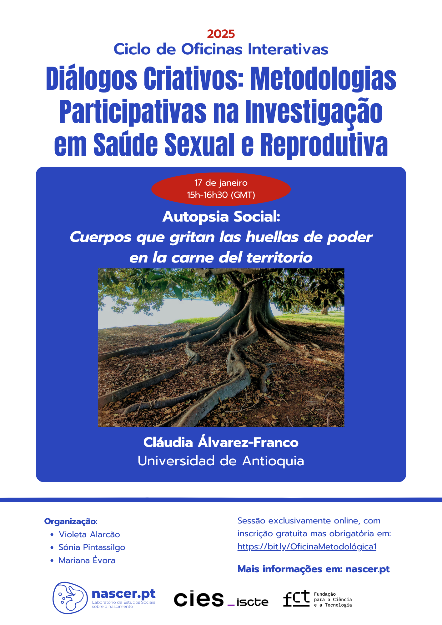 A primeira oficina metodológica acontece no dia 17 de janeiro de 2025, entre as 15h e as 16h30 de Lisboa (Portugal), através da Plataforma Zoom. Esta sessão, dinamizada por Cláudia Álvarez-Franco (Universidad de Antioquia, Colombia) foca-se na Autópsia Social para a Mortalidade Materna, uma metodologia que investiga fatores sociais, comportamentais e dos sistemas de saúde que contribuem para mortes maternas, combinando entrevistas qualitativas com autópsias verbais (Kalter et. al., 2011).