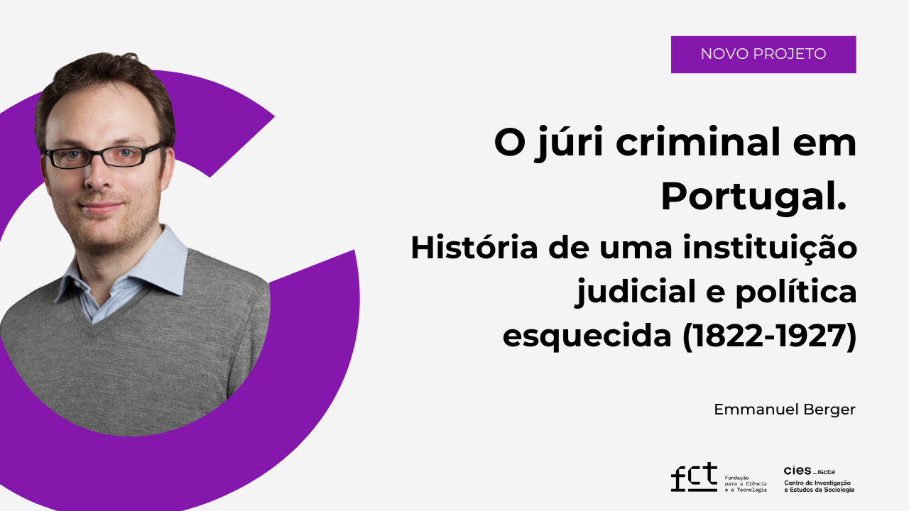 O Centro de Investigação e Estudos de Sociologia (CIES-Iscte) acolhe o projeto CRIMJUR – O júri criminal em Portugal. História de uma instituição judicial e política esquecida (1822–1927), aprovado no âmbito do Concurso de Projetos de Investigação Exploratória (PEX) da Fundação para a Ciência e a Tecnologia (FCT).