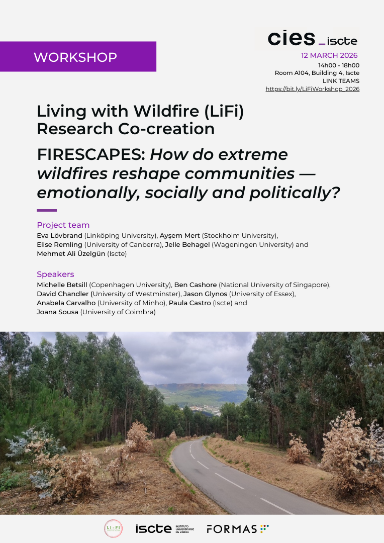 O workshop terá lugar no dia 12 de março de 2026, das 14h30 às 18h00, proporcionando um momento de reflexão pública sobre as perspetivas comparativas do projeto e a sua proposta teórica de Firescapes. O workshop contará com comentadores convidados e estará aberto ao público, destinando-se principalmente a investigadores/as e estudantes.
