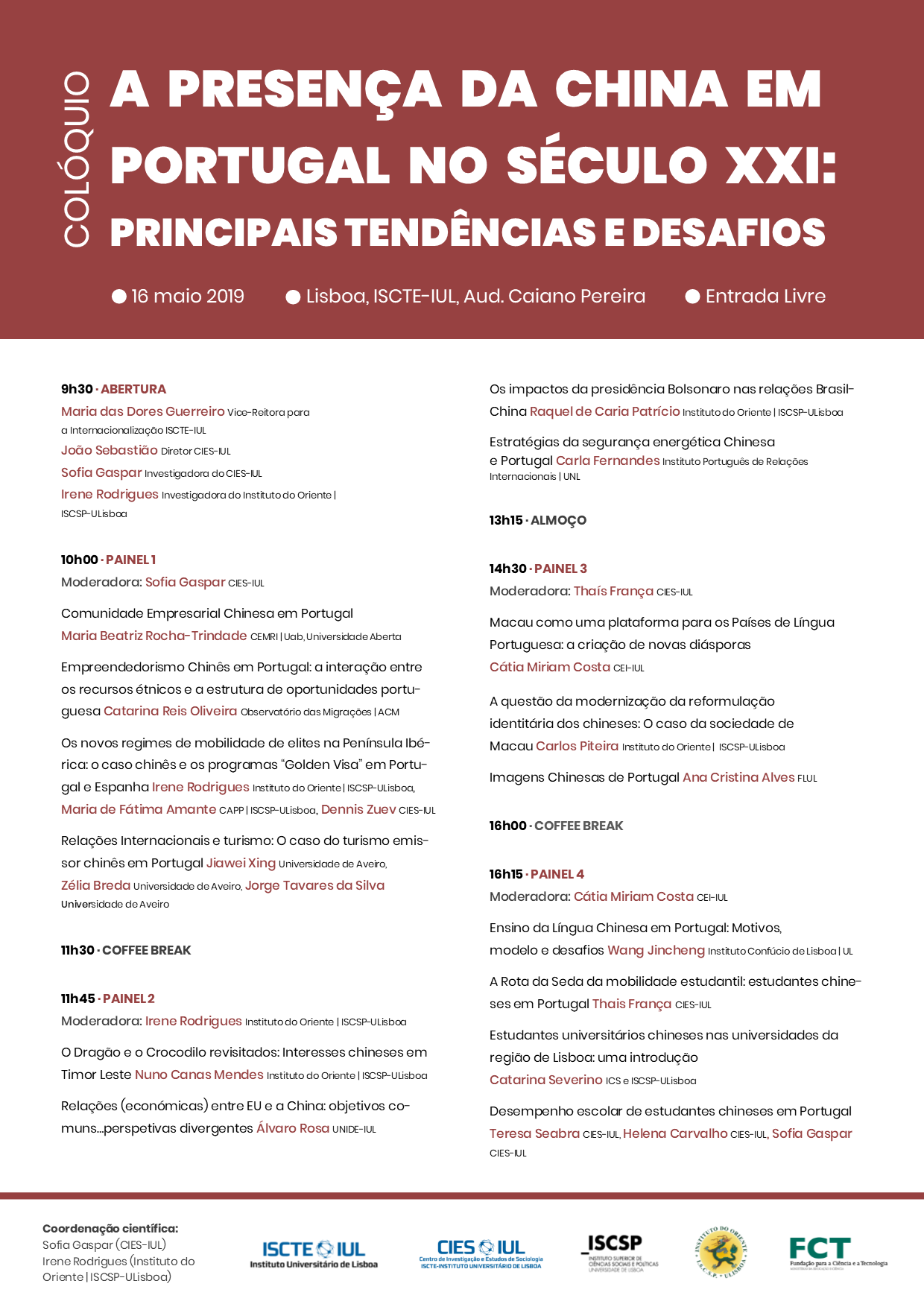 16 May 2019 | 09h30 | Aud. Caiano Pereira, ISCTE-IUL