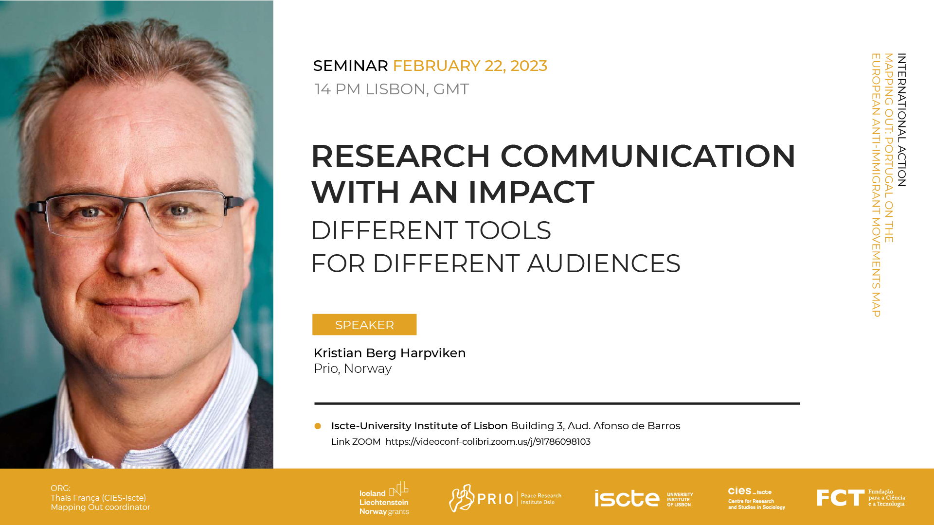 The seminar "Research communication with an impact: different tools for different audiences", in the scope of the research project "Mapping Out: Portugal on the European anti-immigrant movements map" - takes place on the afternoon of February 22 at 2pm (GMT) in a hybrid format.