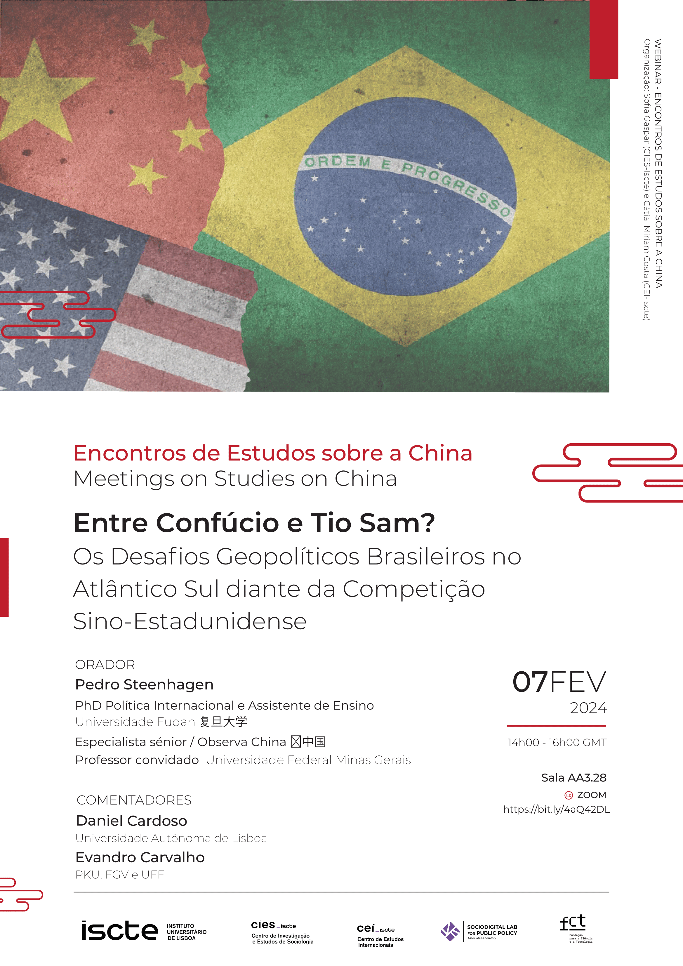 No dia 7 de fevereiro terá lugar o primeiro Encontro de Estudos sobre a China do ano 2024, com o tema “Entre Confúcio e Tio Sam? Os Desafios Geopolíticos Brasileiros no Atlântico Sul diante da Competição Sino-Estadunidense”.